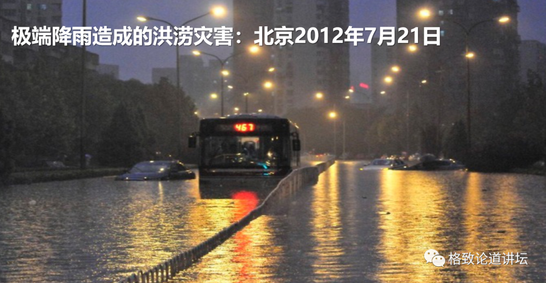 举一个例子就是北京2012年7月21号特大暴雨造成了洪水灾害,使得我们这个城市发生了特大的洪涝,造成了很多生命财产的损失。