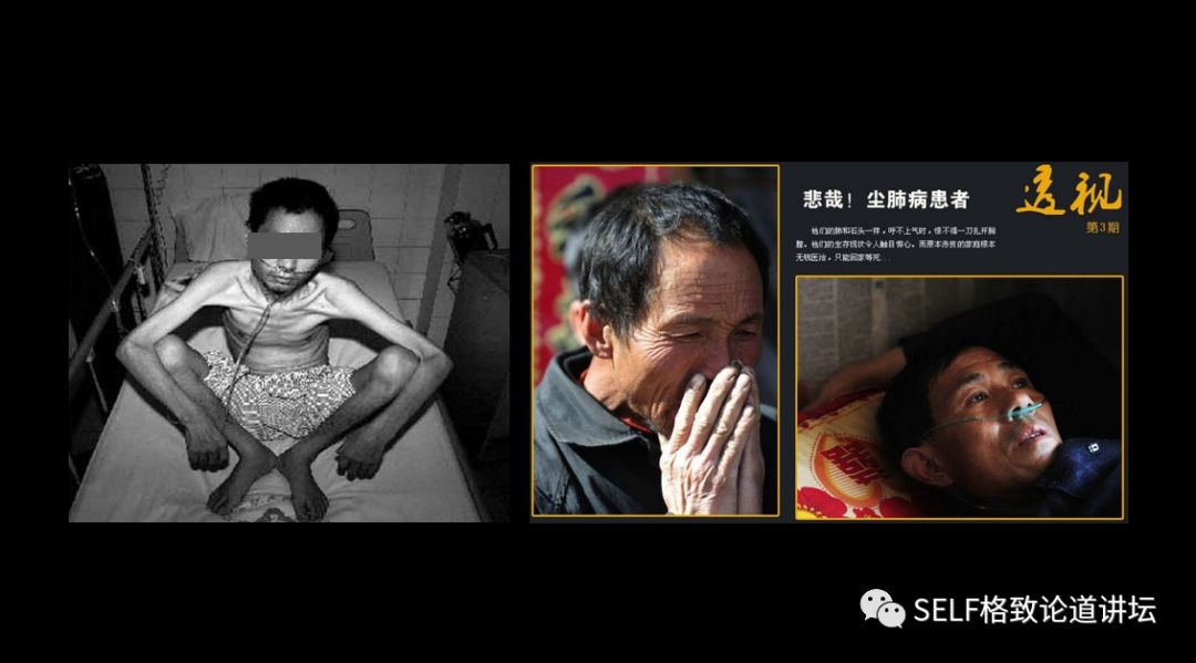 这些照片所描述的就是尘肺病病人在得病以后的状态。很多病人由于得了尘肺病而因病致贫或者因病返贫,这些现象时有报道。