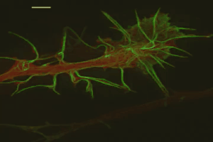 这也是一张用超分辨显微系统拍摄的海马区神经元丝状伪足运动的图像。