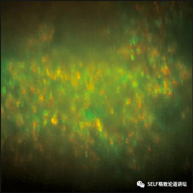 展示一下超分辨显微系统的魅力。这张图是小白鼠大脑海马区的一个超分辨显微系统的观测图。这是常规系统拍摄的图,实际一片模模糊糊。