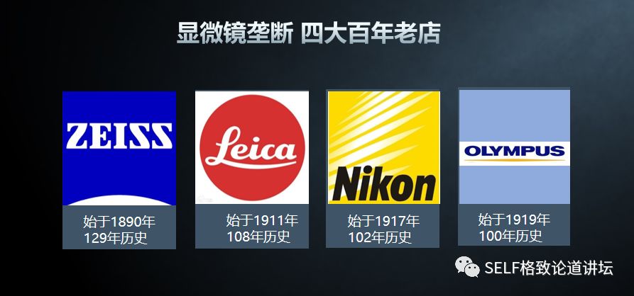 现在全世界显微镜市场基本被这四家公司垄断了。这四家公司都是百年公司,他们具有悠久的历史。而我们中国的显微镜现状又是怎么样的呢?