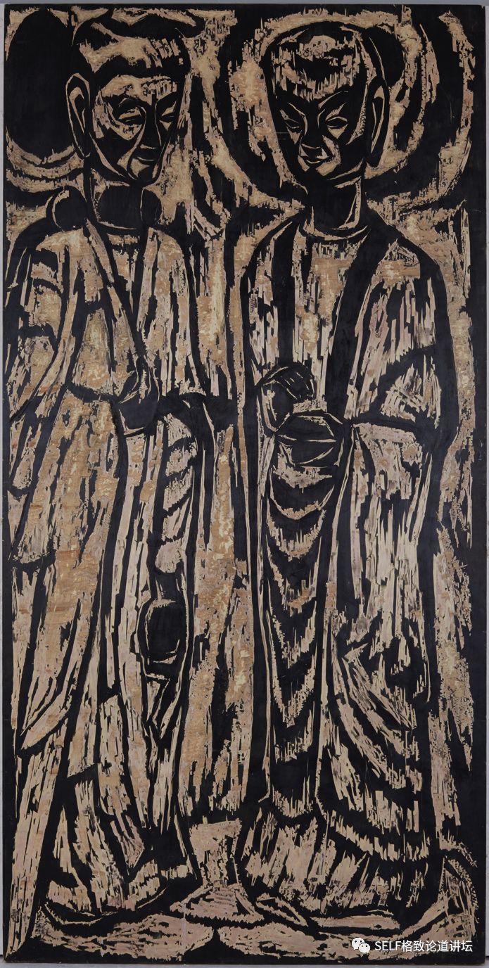 这张木刻版画也是比较明确的,哪怕你不了解这是一张木刻版画,但是能看到这个形象就是两个尊者在会意地微笑。