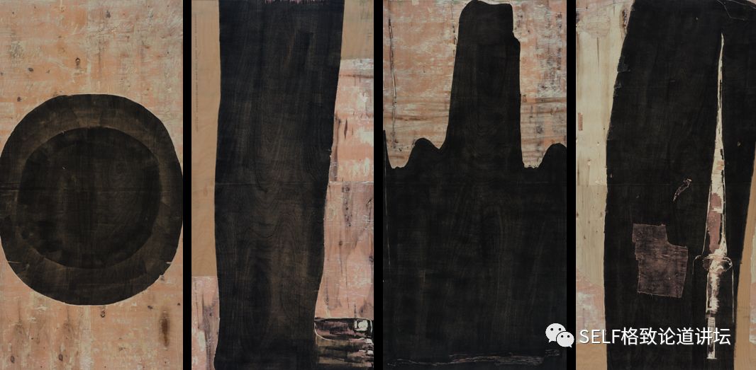 看到这个作品很有一些感觉,这个也是四张,但是有很大的差异性,因为这个板子直接是木板的材料,它多了一个材料的维度。