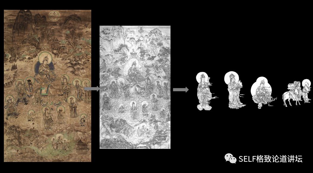 这是“一个洞窟一本书”的概念,一旦你进入到洞窟,看到的都是壁画,如何使用,肯定需要它的线描稿。