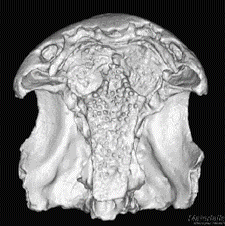她做的工作就是把这个2.8厘米的头骨一片一片磨下来,磨成了大概500多张片子,然后重建它的脑腔,在这个过程当中她有了一个重要发现。