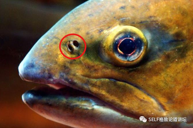 这就是我刚刚讲到的鱼,这是一条普通的鱼,它有两对外鼻孔,和我们是不一样的。