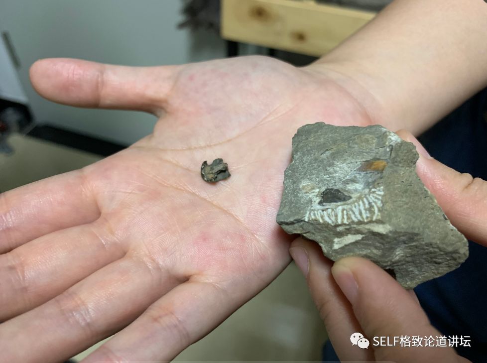 这是我要介绍的一个化石,这也是我读博士时研究的一个材料,它非常小,大概1厘米左右。