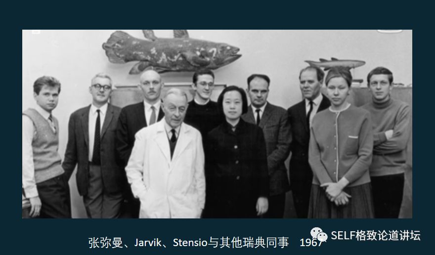 这是1967年瑞典学派最鼎盛时期的照片,这里面有一张东方面孔,她是张弥曼院士,这张照片是她第一次到瑞典求学时拍的。