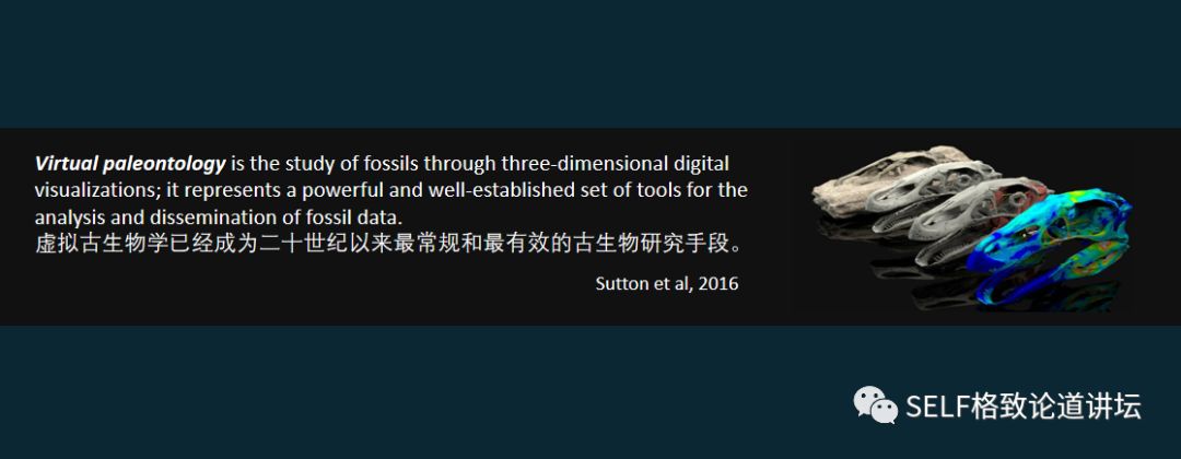 现在我们进入了一个新的时代,研究虚拟古生物学,过去我们是拿着化石进行实体研究,现在则是把化石扫描之后,在计算机里对它进行重建、分析,进行数据分析、处理等,这就叫虚拟古生物学。