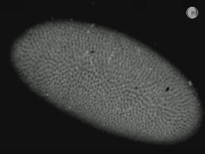 例如,这是一个昆虫的胚胎,它的细胞在不同的位置做着不同的事情。