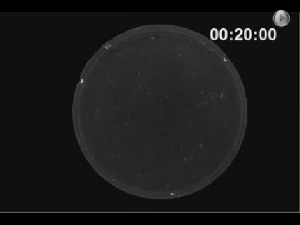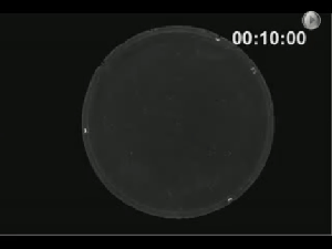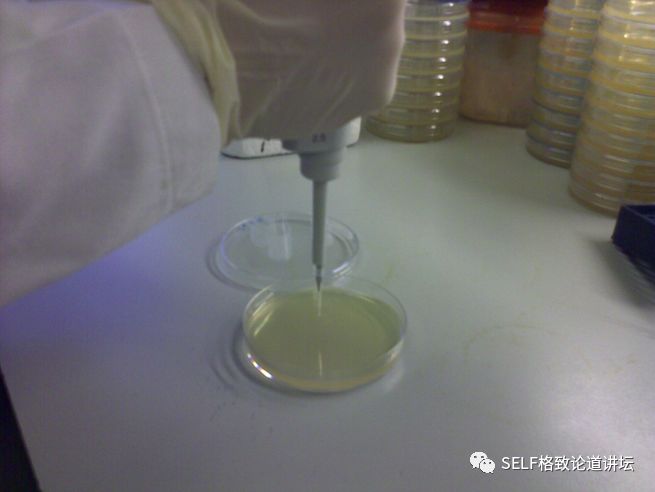 我们把这个细菌接种在一个培养皿上,这个培养皿差不多10厘米大小,这个细菌会生长,变多,逐渐占满整个培养皿。
