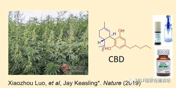最近,我们研究所的一位老师罗小舟,在美国的实验室工作时,做的一项工作是把大麻里面的基因放到了微生物里,让微生物直接生产大麻素这一类的药物镇定剂,像CBD。