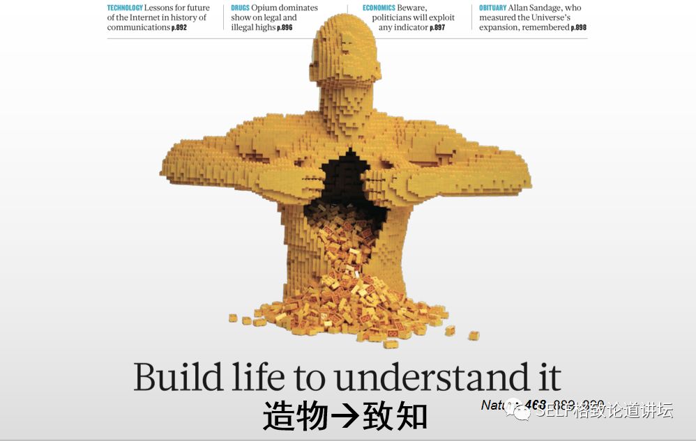 薛定谔写过一本名为《生命是什么》的书,他说生命其实是有序的,是有法则可依的。朱熹老先生也说过格物致知,所以第一部分内容是造物致知。