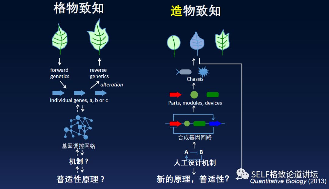 前面举的几个例子就是造物致知。格物致知就是传统的生物学,自上而下的,比如发现这片叶子之所以形成这个形状,它背后的基本原理或者是可能的作用机制。