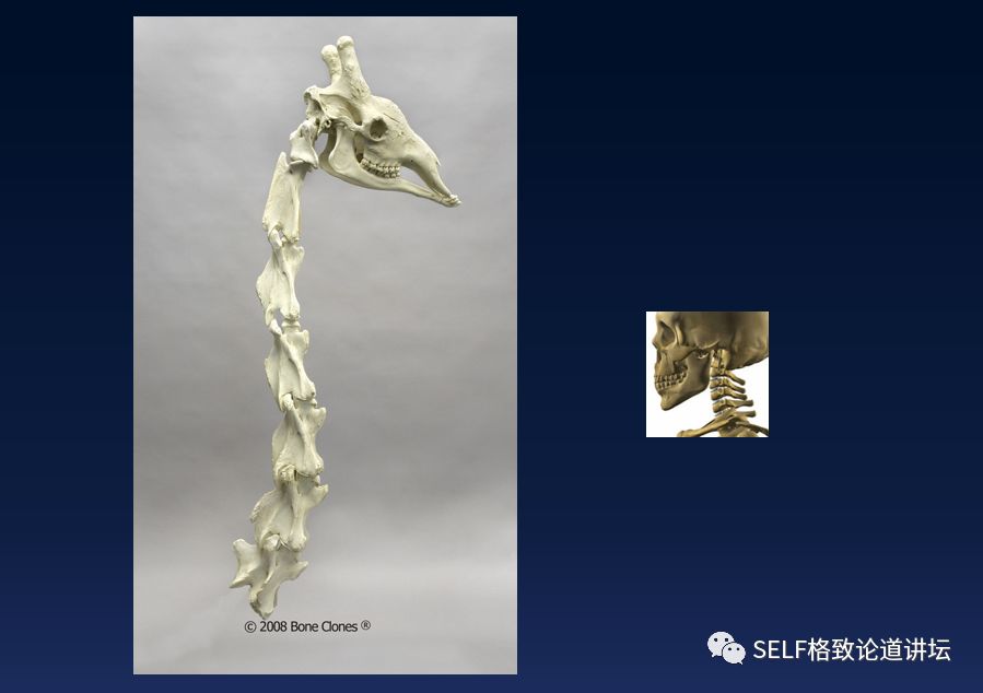 还有一个有趣的问题,就是重复结构的大小。长颈鹿的颈椎和人一样都是七块,但它的颈椎比我们长很多,这个长度到底是由什么决定的呢?