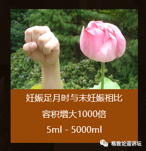 到达分娩前的那一刻,子宫的体积或者容积(连同胎儿胎盘、羊水)可达5000毫升。