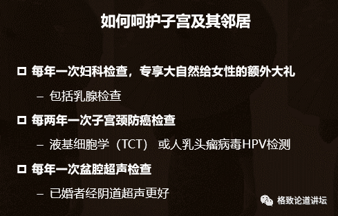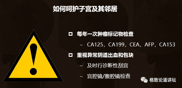 最后,重视异常阴道的出血和包块,无论是阴道出血异常还是发现包块,要及时诊断、及时治疗。