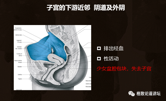子宫的下游邻居是阴道及外阴。阴道是经血排出的通道,是胎儿娩出的通道,也是性活动的通道。