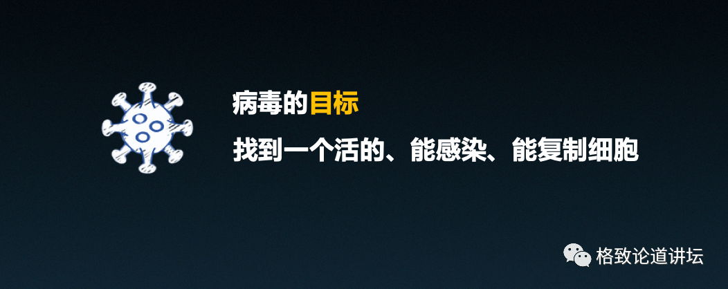 病毒只能寄生,它的目标就是找到一个活的、能感染的、能复制的细胞让自己一直存在下去,这就开始了病毒的通关之旅。