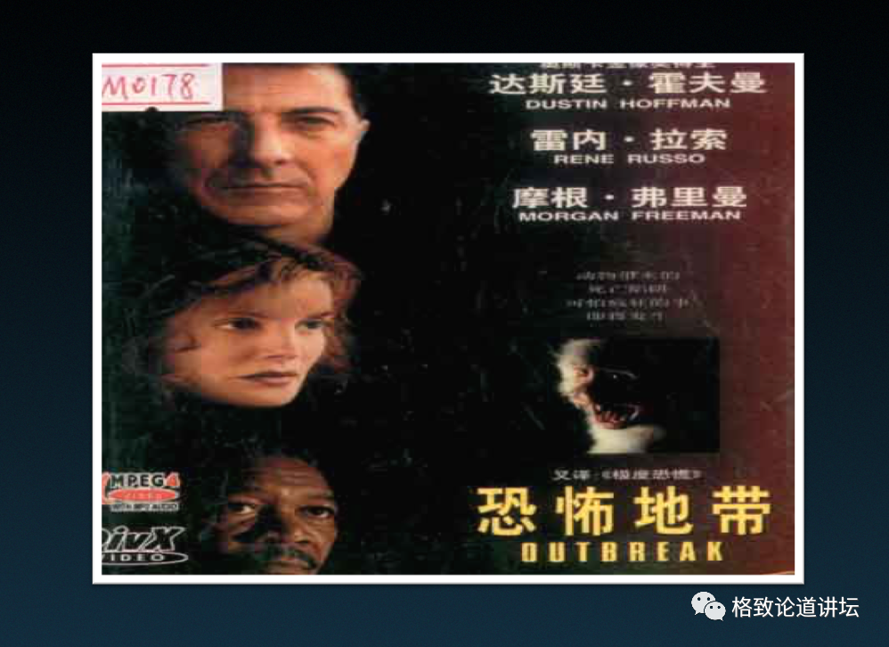 实际上,新发传染病出现的概率还是很低的,要好多年才有一次。给大家推荐一部美国在90年代拍的叫《恐怖地带》的电影,影片就是关于一个新出现的传染病。