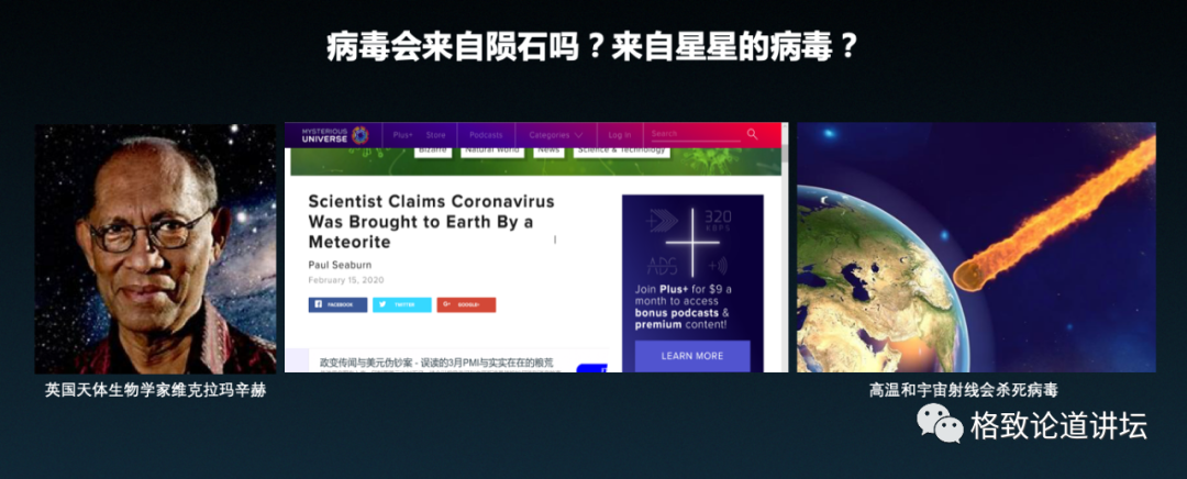 第一则报道与最近非常流行的一个叫“甩锅”的词有关。下图这位英国的生物学家叫维克拉玛辛赫,他甩锅甩得最彻底,甩给外星人了,说病毒可能是来自于陨石,来自星星的病毒。