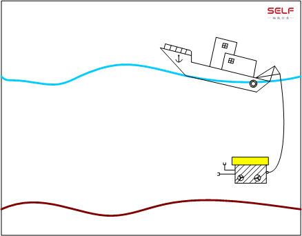 对于遥控水下机器人,需要电缆将它和母船进行连接,母船通过电缆为它提供能源,它通过电缆向母船回传获得的数据。整个过程中因为有母船的支持,所以它不会跑得很远,也正因此,它只能在水下的一个小范围,或者局部范围内做定点观测。