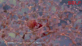 通过这些图,大家可以看到水下机器人在水中巡游时拍到的一些水中生物的情况。对于大型的遥控水下机器人,有时我们会给它装上机械手,以便它在水下进行取样作业。
