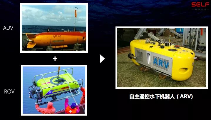 所以我们想能不能研制一种新型机器人,既可以大范围运动,也可以在局部范围内做精细的观测。这就是我们最初提出自主遥控水下机器人设计理念的雏形,我们把这种新型水下机器人叫作ARV,它的英文名字来源于ROV和AUV。