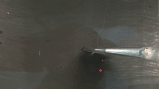 说到这儿,不得不提到我们又一个偶然的实验发现。当时在实验当中,我们的同学希望找到一个东西拨动液态金属液滴,当时手边并没有什么工具,所以她随手撕了一张铝箔,拨动了这个液滴。