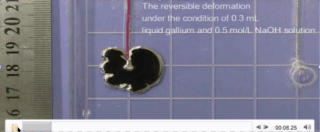说到这儿,又不得不提到另外一个偶然的事件,当时我们要拍一个科普视频,所以就想重复一下液态金属变形的实验,我就安排了我的学生来重复这个实验。