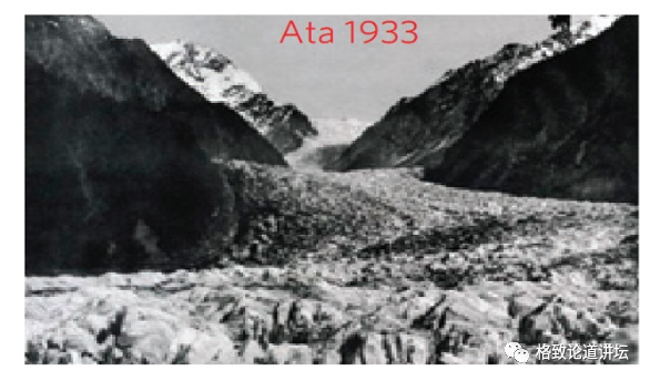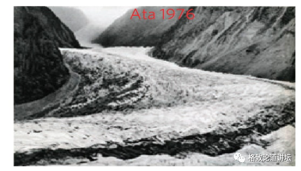 蓝色线条是小冰川退缩的趋势,它的退缩趋势更为强烈。有预测说未来的五六十年,一些小冰川可能就会消失。