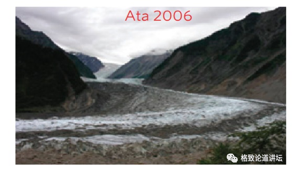从视觉上可以直观地看到冰川退缩得非常强烈。