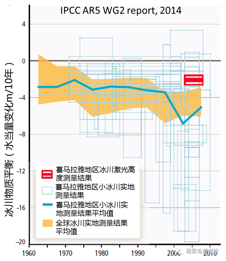 下图是IPCC(政府间气候变化合作组织)给出的喜马拉雅山地区冰川退缩的趋势图。从图中可以发现,冰川在这几十年退缩得非常强烈。