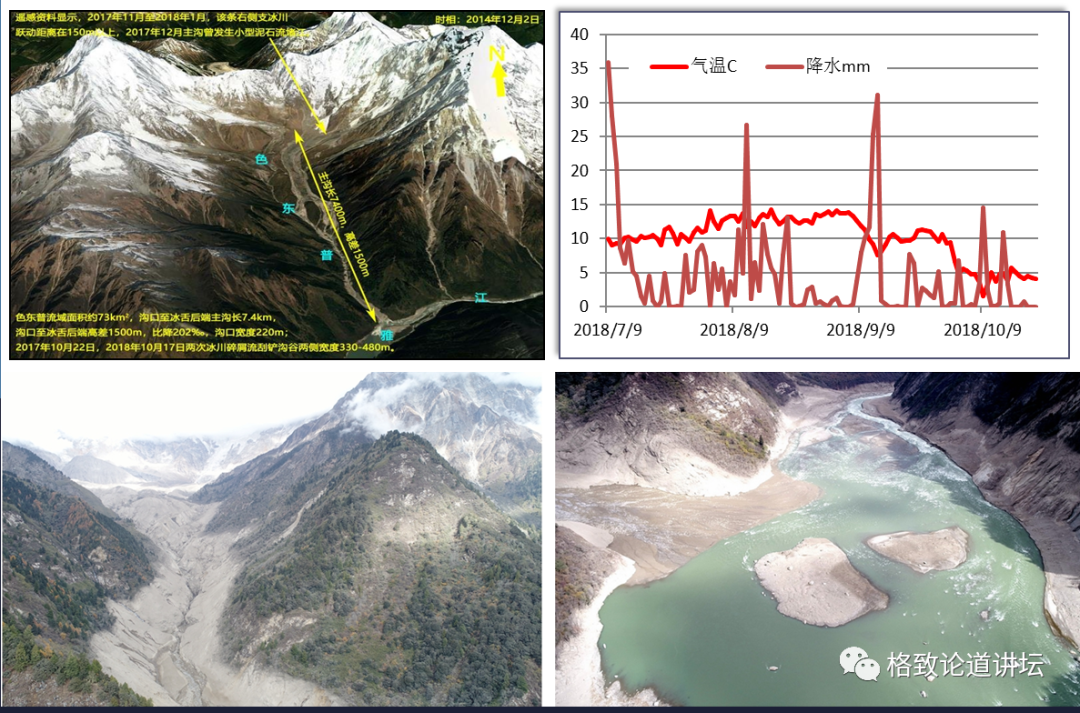 冰崩带来的大量碎屑物质从支沟进入到雅鲁藏布江的干流,进入干流以后,把雅鲁藏布江阻断。所幸的是由于雅鲁藏布江水流量比较大,把堰塞体冲开了,没有形成溃坝事件。