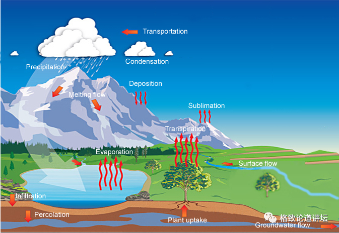 在高山地区,由于冷凝和重力作用,各种来源的水分汇聚后,又不断分发出去。因此,高山地区具有天然的水塔功能。