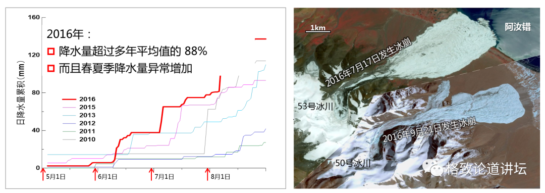 另一方面,随着冰川退缩,冰川不稳定性增强,降水的增加使冰川表面更加不稳定。