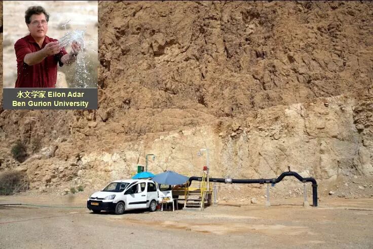 这个地方是以色列,我们在死海边上取水,这个井是工业用水,现在的井实际就是一个钢管,它探下去2000米可以把地下水引上来。这地方是新疆伊犁,这水是用来农业灌溉。地下水有各种各样的用处,我们和国土资源部、中国地质科学院合作做了个地下水调查,图中可以看到水的装置,大概取样需要半小时到一个小时的时间。