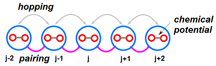 大家也许会有问题,电子的反粒子是正电子,我们的金属超导材料里面只有电子,没有正电子,怎么会得到马约拉纳费米子?这又涉及到怎么产生马约拉纳费米子。我想举例来说明。有一个俄国人,叫做Kitaev,提出了一个很简单的模型。