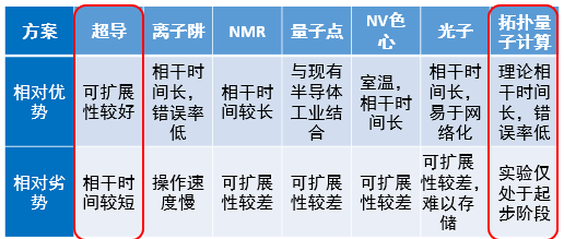 目前的情况来看,超导量子计算是一个主流实验方案。多数的工业界也投入在这个上面。我今天主要要讲的拓扑量子计算, 在理论方面有明显的前瞻性,有可能解决其它方案不太好解决的量子退相干与纠错问题。缺点是刚刚开始,实验还处于起步阶段。