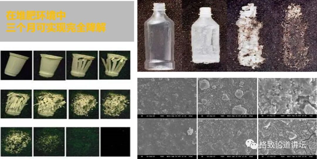 我们做过一个实验,把降解塑料做的杯子和瓶子埋在土里,三个月后确实找不着了,完全变成二氧化碳,回归到了自然的循环中。