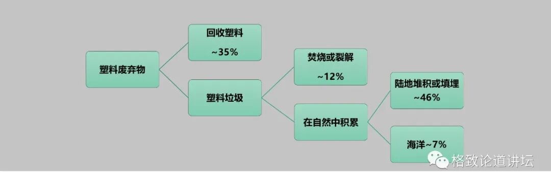 每年中国大概会产生4000万吨的塑料废弃物,大概只有30%多一点的废弃物会被重新利用,剩下60%多都变成了废弃物。