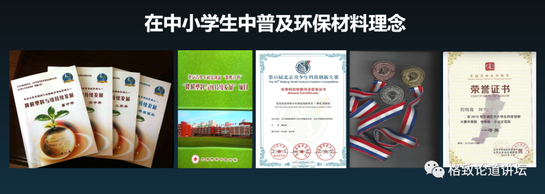 我们在北京市中小学里开设了“降解塑料和我们的环境”这么一个课程,从小学、初中到高中,我们带了很多高中生在做环保方面的一些工作,在做降解塑料的一些工作。在市里也取得了比较好的效果。
