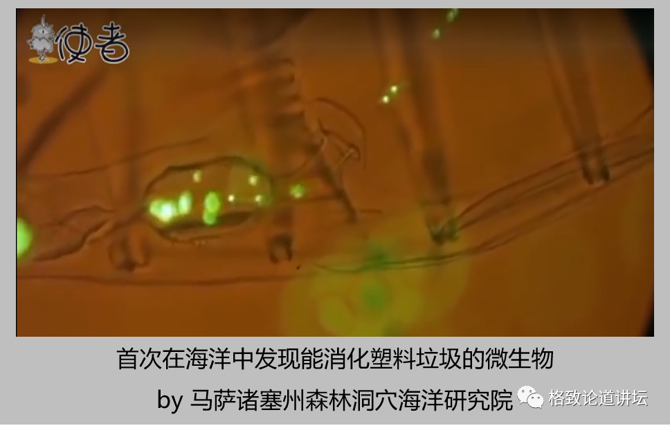 最后,大家从海洋里也找到了一些可以吃掉海洋塑料的微生物,效果还是很好的。也许,这个路线是解决海洋塑料污染存量问题的一个可行的方案和办法。