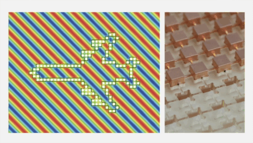 我们设计了一种隐身材料,就像画面中看到的一样,由隐身材料组成的结构可以是任意大小和形状。