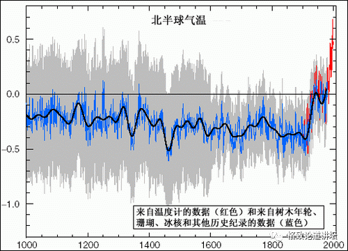 这是报告中给出的过去一千年气候变化、气温变化的时间状况。