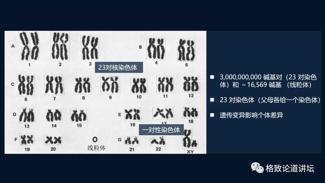 我今天主要讲的是核基因组,主要原因是核染色体中的DNA在重组传给下一代之前,在父母双方的体内会发生重组,而线粒体只来自母亲,并且不发生重组。