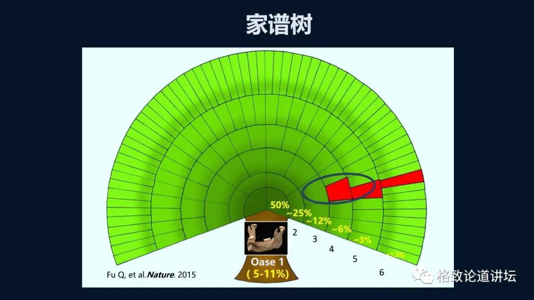 当我们把这个个体的关系放到家谱树中,就能了解到如果用尼安德特的含量来说,大概能估算出2到4代、2到5代之前。