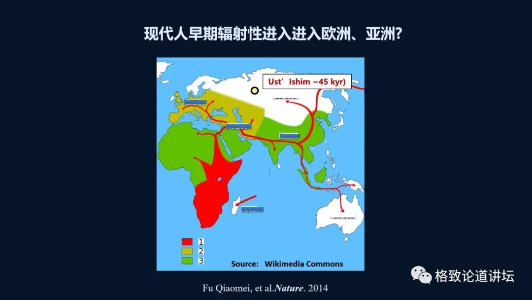 以其中一个个体为例,这里的西伯利亚的Ust’ -Ishim个体,这个个体至今4.5万年,可以说他是目前除了非洲和近东以外,有最古老的直接测年的早期现代人。