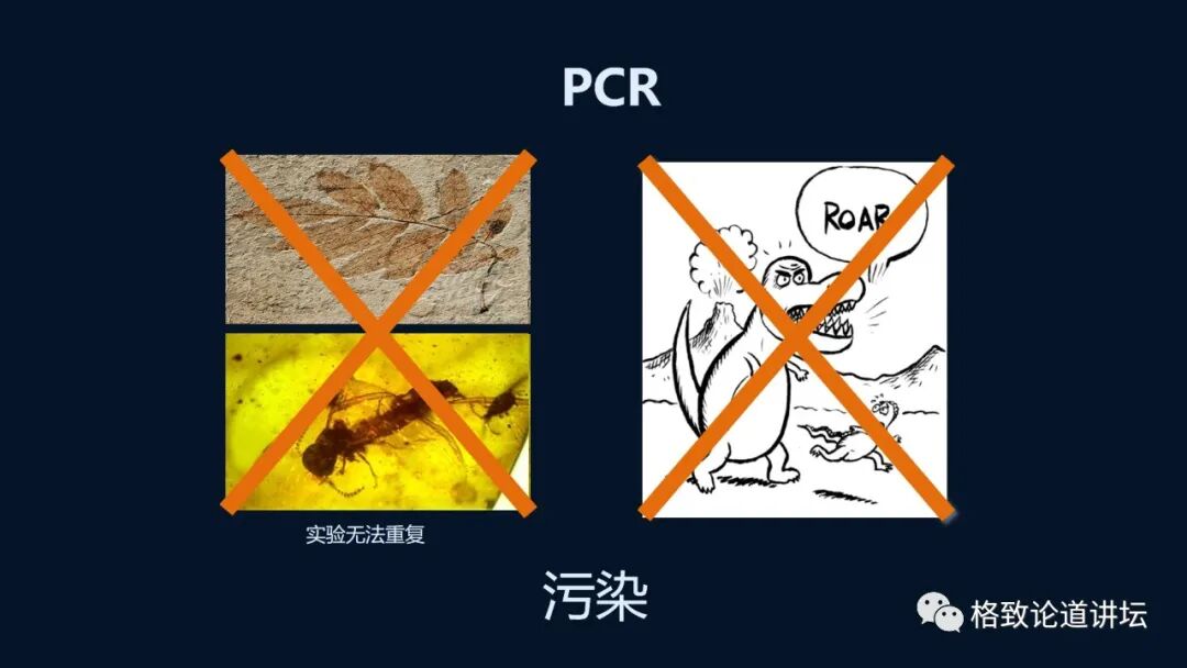 如在这里看到的琥珀、恐龙蛋,当时都认为从中发现了相关的遗传物质,甚至是认为是属于它们本身的,但是后来研究发现,它们都来自于污染。