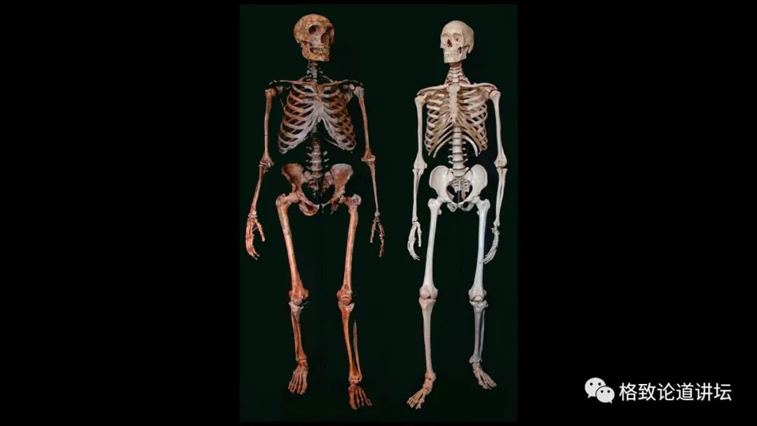 大家可以明显看到,左边的尼安德特人的整个肋骨情况跟现代人是不一样的。